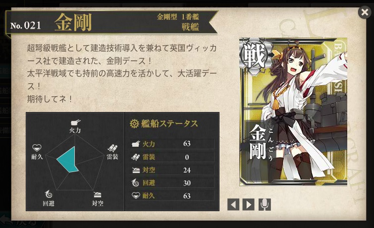 老朽艦とあって装甲はやや心もとないが、火力は他の戦艦に引けを取らず、なにより自慢の快速っぷりは、性能の衰えを一切感じさせないものであった。